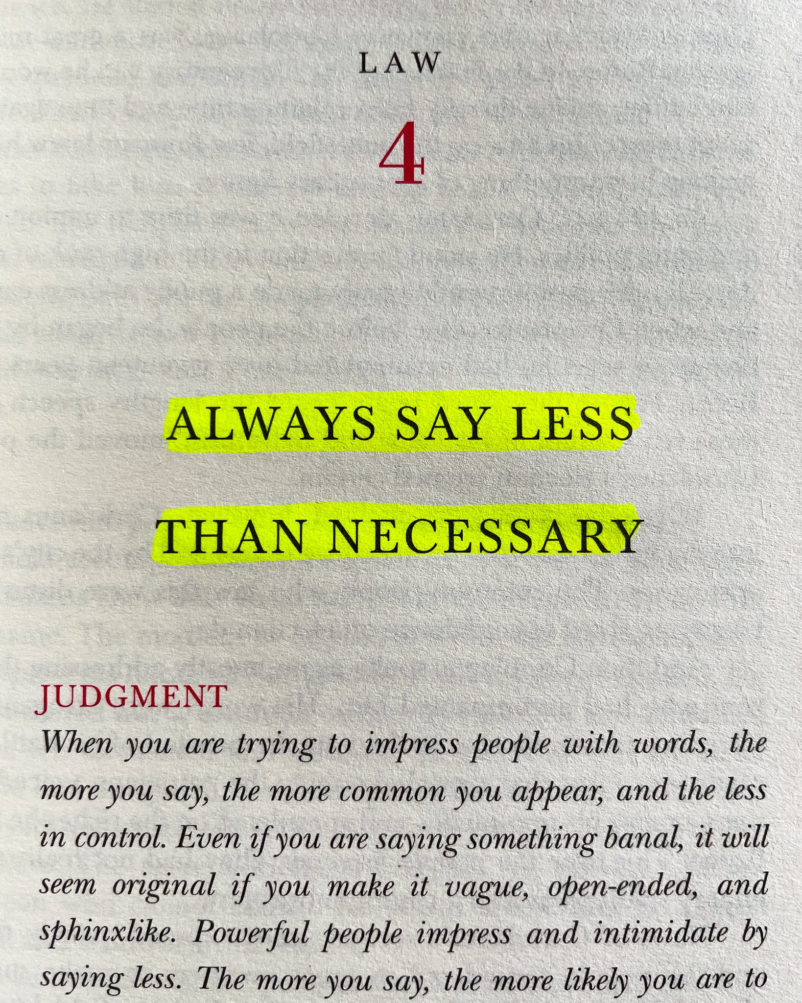 Robert Greene on X: “Law 4: Always Say Less Than Necessary http